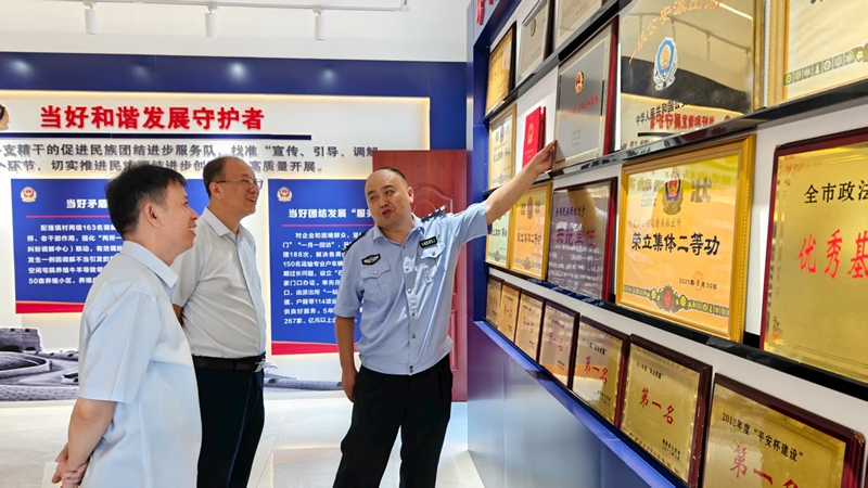 慰問組一行來到磨頭派出所,在民警的引導(dǎo)下,首先參觀了派出所文化長廊與榮譽(yù)展廳,詳細(xì)了解了磨頭派出所歷史沿革與取得榮譽(yù)。
